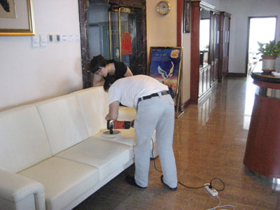 剛買的皮沙發(fā)最好兩年內(nèi)請專業(yè)沙發(fā)護(hù)理公司上門清洗保養(yǎng)一次,因?yàn)檎嫫け砻嬗幸粚颖Wo(hù)層從皮革廠出廠的真皮成品需經(jīng)過裁皮、縫皮、捫皮三個車間做成沙發(fā),再經(jīng)過倉庫、運(yùn)輸、賣場、到你家真皮表面已受了磨損。專業(yè)公司清洗保養(yǎng)沙發(fā)有這幾道工序:清洗、上色彩保護(hù)劑、上手感柔軟劑或光亮劑等。